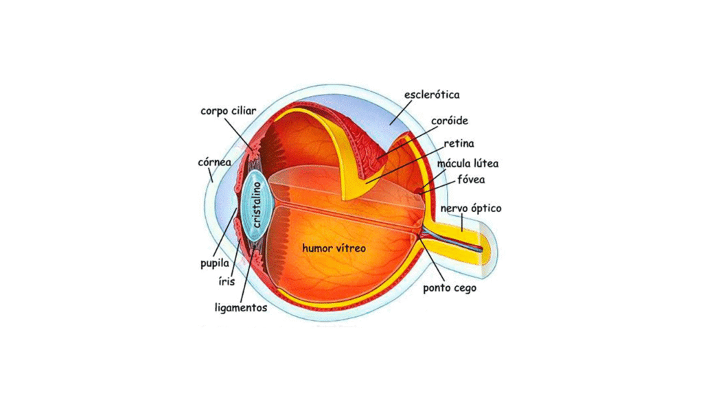 Pense na retina como o sensor de uma câmara fotográfica de altíssima resolução. Localizada no fundo do olho, é uma camada fina de tecido nervoso sensível à luz, responsável por captar as imagens que vemos e transformá-las em sinais elétricos. Estes sinais são enviados ao cérebro através do nervo óptico, onde são interpretados como visão.